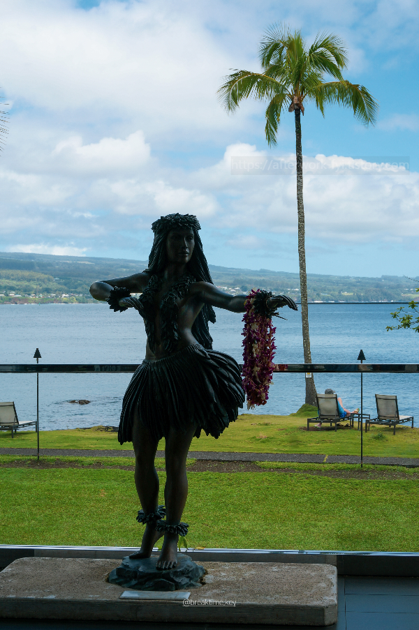 호텔 로비에는 하와이안 전통 춤을 추는 소녀 동상이 있어요. 이 호텔의 시그니쳐 같달까요.